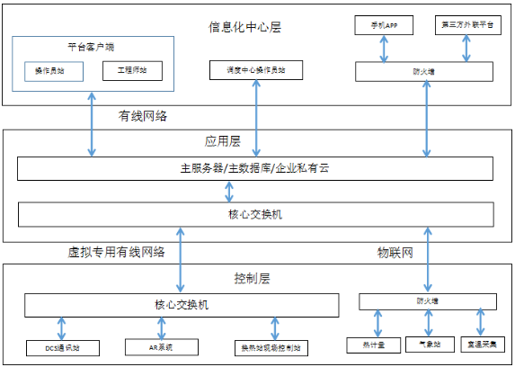 控制層包括在每個熱源、熱網、換熱站、熱用戶等現場安裝的各種自控硬件設備(例如PLC控制設備、計量設備、溫控設備、系統參數檢測設備等),這些設備可以采集現場數據,為智慧供熱的大數據分析提供數據來源及控制依據。智慧控制層與上層數據通信方式采用多種通信方式。